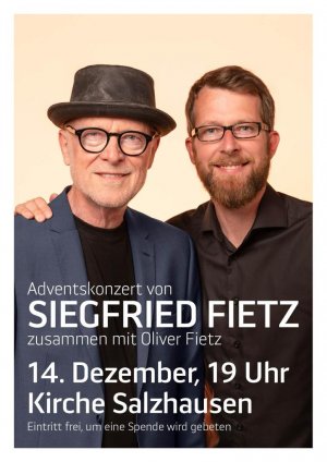 Salzhausen. Am 14.12. um 19 Uhr ist Siegfried Fietz zusammen mit seinem Sohn Oliver zu Gast in der St. Johanniskirche in Salzhausen zu einem adventlichen Konzert. Bekannt geworden ist er vor allem durch die Vertonung des bekannten Textes von Dietrich Bonhoeffer „Von guten Mächten wunderbar geborgen“.